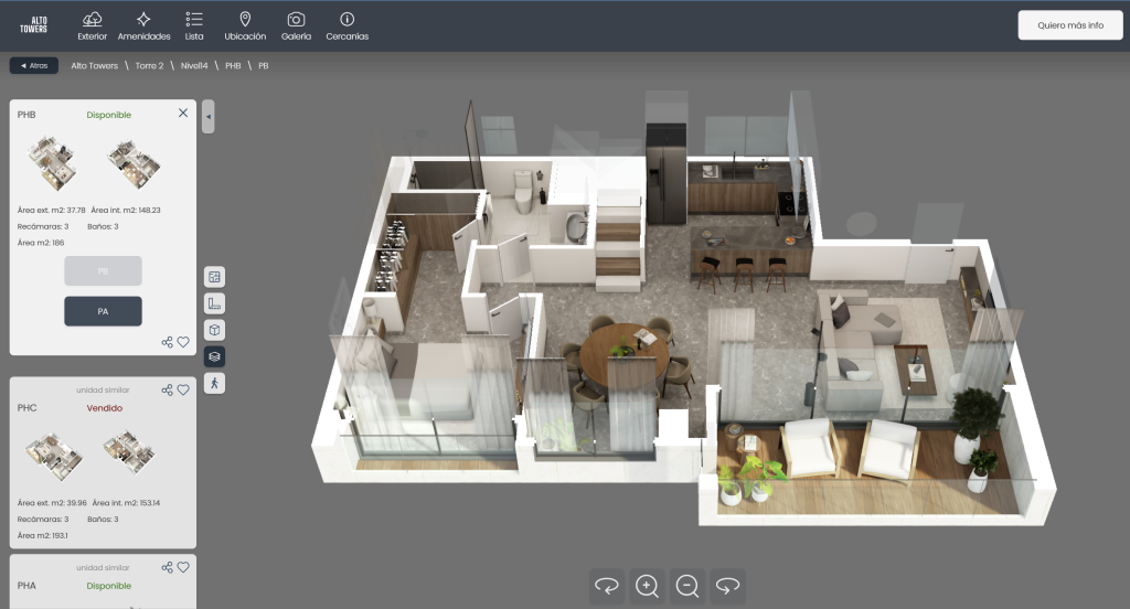 “Se ha convertido en mi herramienta número uno; los compradores me piden el link para seguir explorando y mejora el proceso en la sala de ventas”, comenta Liliana Zavala, Directora de Ventas de Alto Towers.